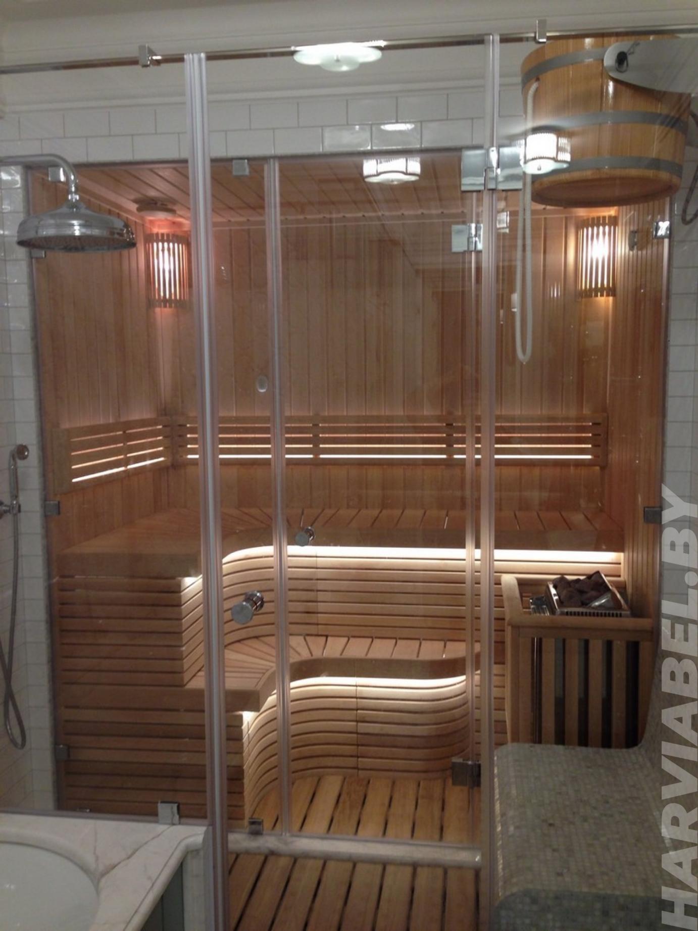 Нашей командой была изготовлена элекропарная с витражным остеклением. По принципу своего строения, данный вид бани является не только уникальным, но и весьма безопасным. Данная парная отлично вписалась в окружающий интерьер. Благодаря грамотно спроектированной и установленной подсветке стен и полок, конструкция выглядит невесомой и очень привлекательной. Также шарма этой электропарной добавило витражное остекление. Использованное остекление обладает повышенной жаростойкостью и прочностью, что гарантирует безопасное и длительное использование. Все элементы электропарной были выполнены из ольхи. Ольха оптимальный материал для использования в помещениях с повышенной влажностью и существенными перепадами температурного режима. Использование вагонки из ольхи для отделки бань и саун гарантирует долговечность облицовки, ее ремонтопригодность и придает окружающему пространству стильный, неповторимый и эффектный внешний вид. Ольха обладает рядом целебных свойств: противовоспалительными и бактерицидными. Срок реализации такого проекта составил примерно 7 дней.