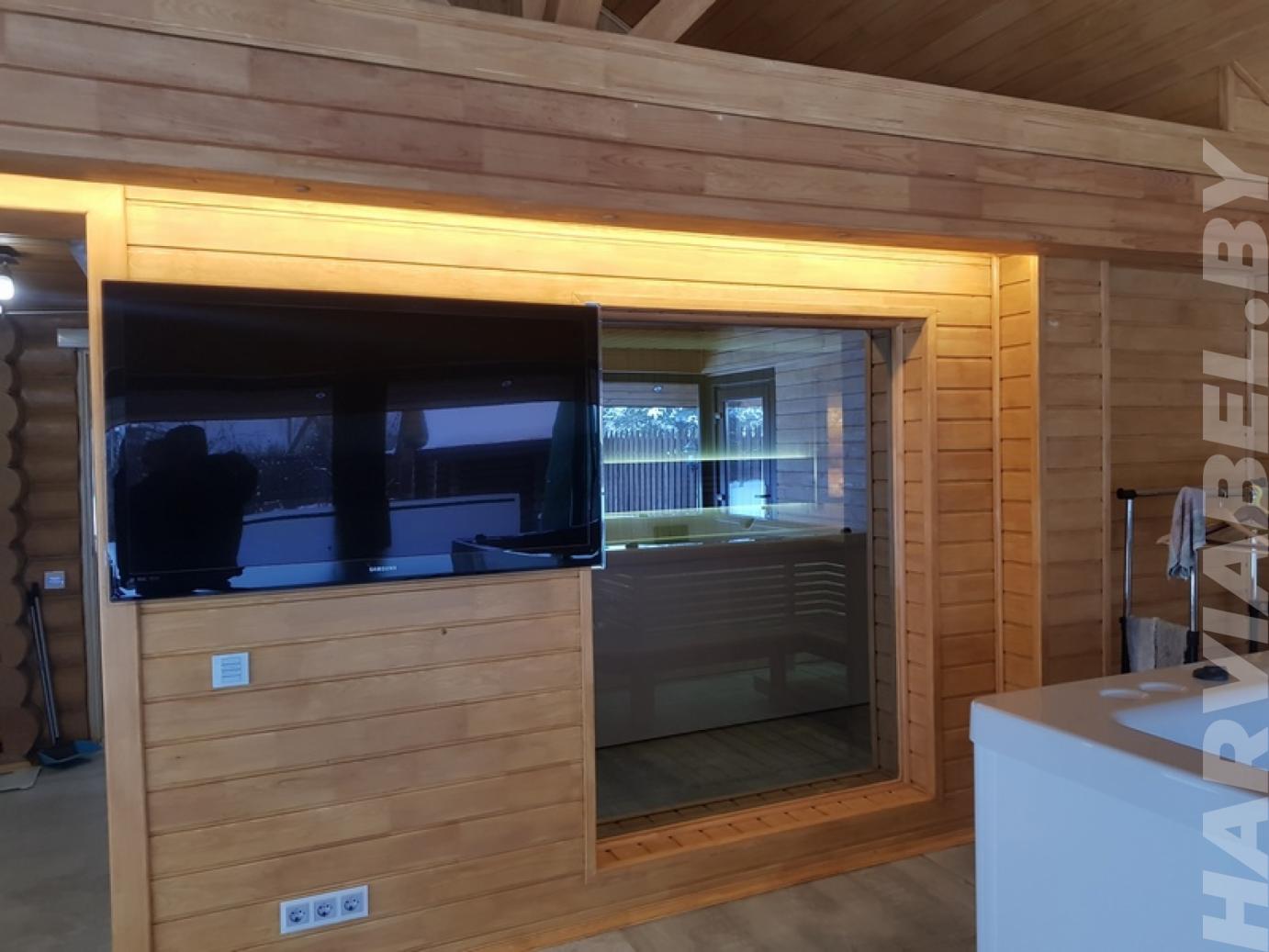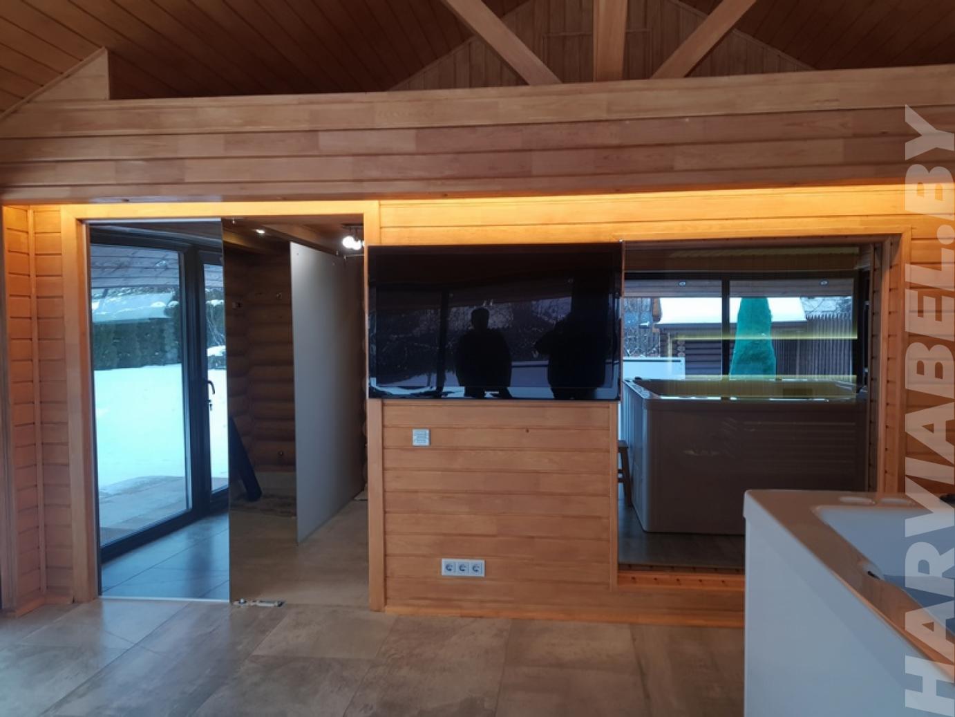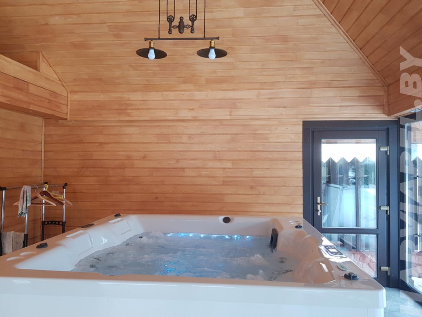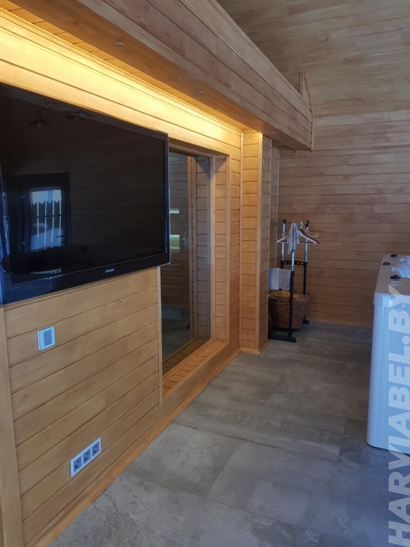 В деревне Колодищи сотрудники нашей компании спроектировали и выполнили отделку просторной комнаты отдыха. Стены комнаты были отделаны с помощью разных видов качественной древесины. Зона возле экрана печи задекорирована камнем. Выбранные для данного проекта отделочные материалы не подвержены пагубному влиянию перепадов температуры и повышенной влажности. Комната отдыха предназначена для расслабления после посещения парилки. Здесь оборудована кухня, место для просмотра телевизора, а также установлено джакузи. Комната получилось просторной и светлой, что будет способствовать приятному времяпрепровождению.