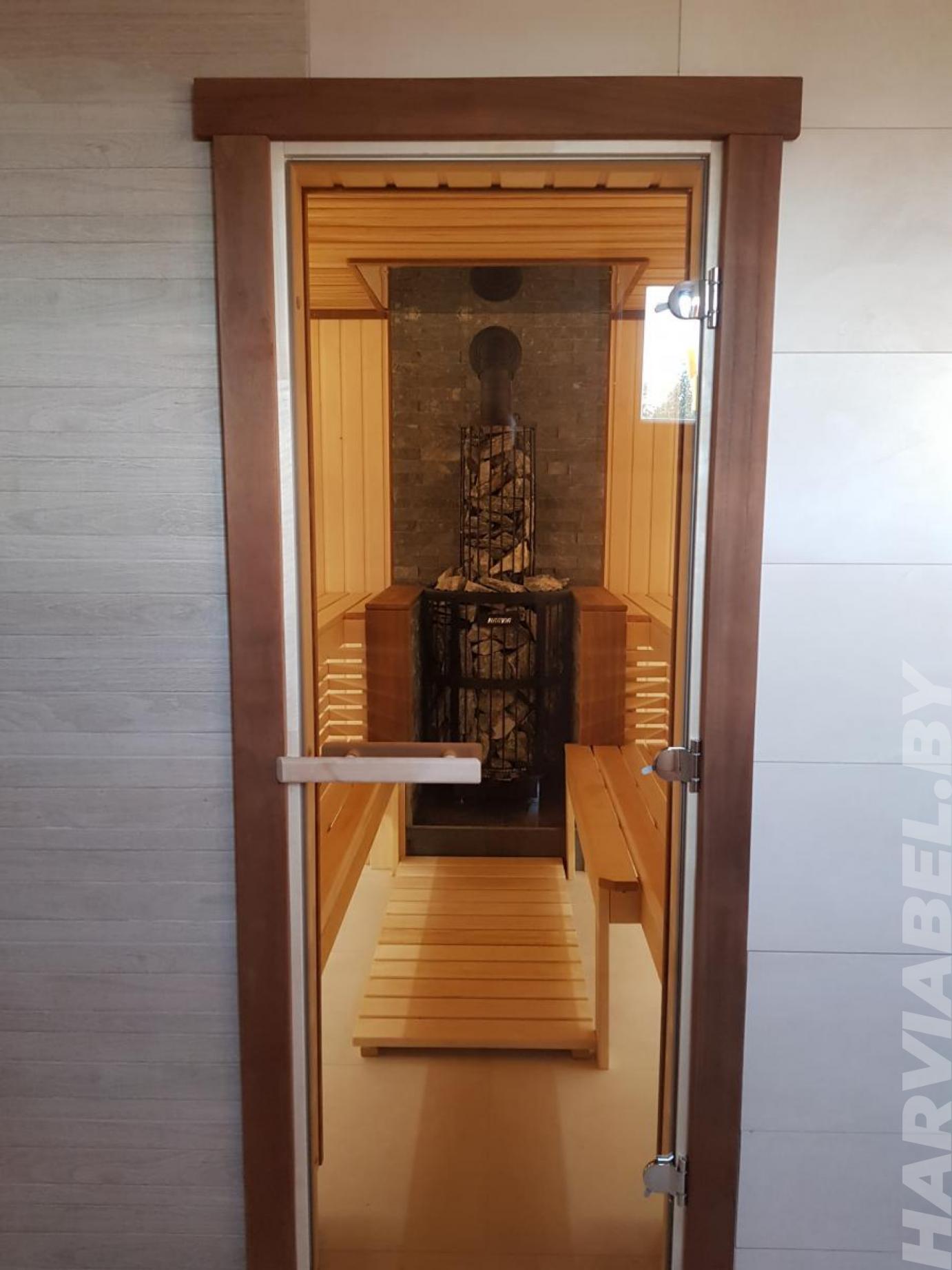 Парная из липы с электропечью Harvia и соляной подсветкой