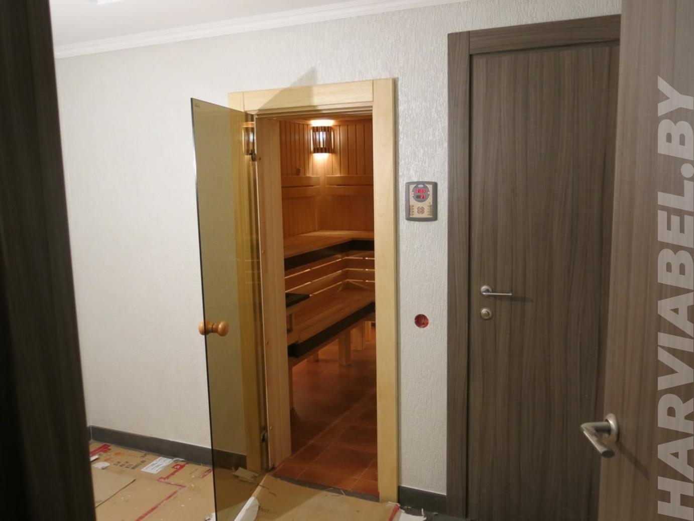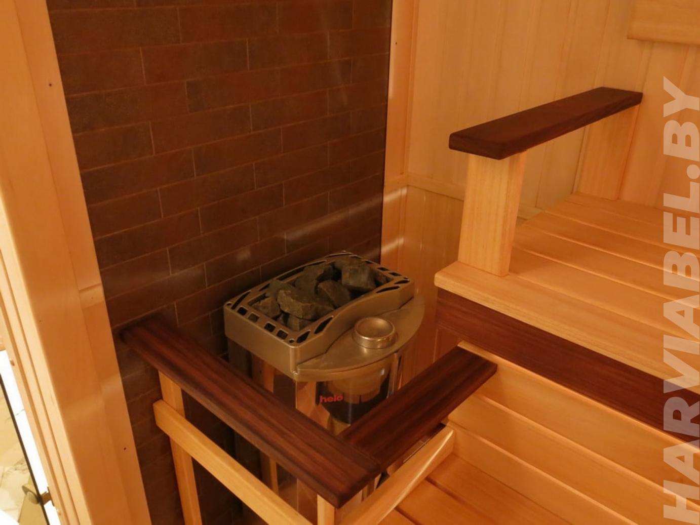 В деревне Мочаны была установлена липовая парная с электрической печью Helo. Размер конечного результата составил: длина - 3 метра, ширина - 2 метра. Вагонка была изготовлена из прочного и экологически чистого материала - липа. Преимуществом древесины из липы является отсутствие смол, которые при нагревании могут выделяться и обжигать. Помещения из липы очень быстро прогреваются и долго держат тепло. Полки также были изготовлены из липы со вставками из африканской древесины термоабаш, которая имеет приятный темный цвет, а также отличается своей стойкостью к влаге и длительному нагреву. Перед использованием такая древесина проходит термическую обработку, после чего и приобретает свой непревзойденный цвет.  Материалы, которые были использованы для производства полок не нагреваются, что исключает ожоги кожи во время пользования парной. Была установлена электрокаменка Helo, которая доставлялась под заказ. Также была выполнена декоративная и функциональная подсветка полков. Срок реализации такого проекта составил 5 дней.