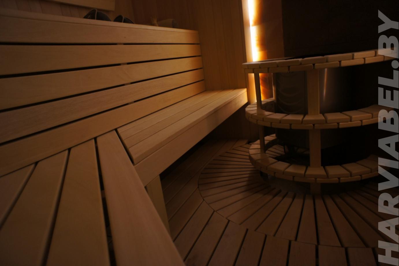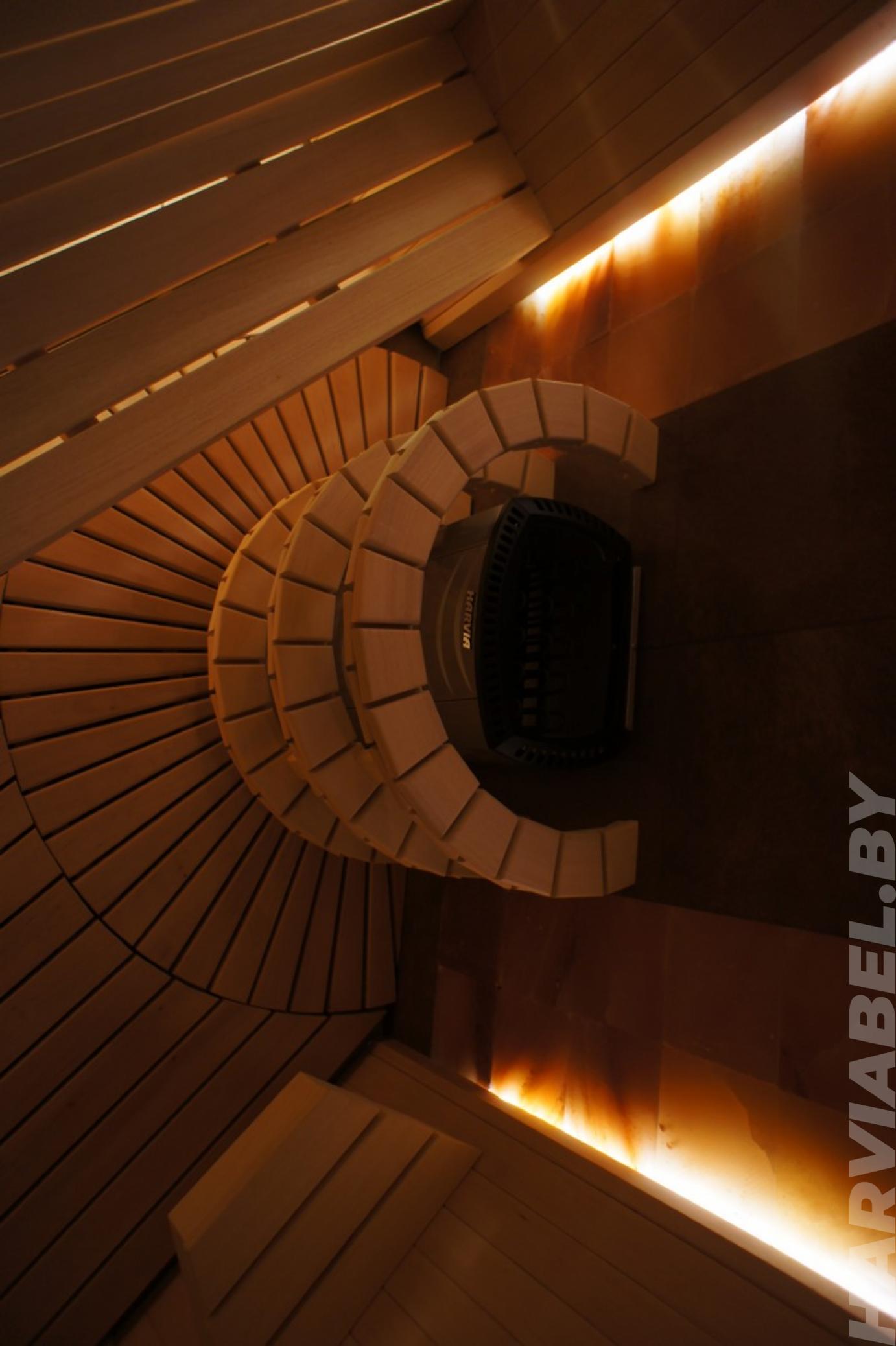 Нашей командой была спроектирована и установлена липовая парная. Липа хорошо подходит для изготовления элементов парных, так как при нагреве помещения эти элементы сильно не нагреваются, что исключает возможность получения ожогов. Во время эксплуатации парной данная древесина наполняет помещение приятным ароматом. Установленная электропечь Harvia проста и удобна при использовании. Вокруг печи была установлена соляная подсветка, которая выполняет не только декоративную функцию, но и благодаря своим испарениям создает особенный микроклимат, который можно сравнить с морским. В целом проект получился визуально весьма привлекательным. Срок реализации проекта составил 7 дней.