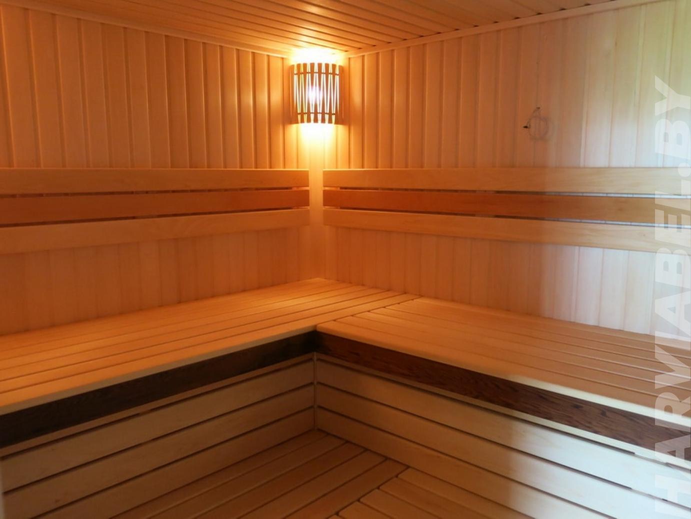 В поселке Городище была установлена липовая парная со вставками из кедра и навесной электрической печью Tylo. Размер готовой парной получился следующим: длина - 2,2 метров, ширина - 4,2 метров. Вагонка была изготовлена из экологически чистого материала - липа, данная древесина богата эфирными маслами, которые при нагревании наполняют помещение приятным и полезным для организма ароматом. Полки были выполнены из липы со вставками из прочного кедра с приятным шоколадным оттенком. Вставки из кедра сделали эту парную весьма оригинальной. Была разработана и выполнена декоративная стена из плитка, это дополнило образ парной. Была установлена навесная электрокаменка Tylo. Каменка данного типа оснащена термостатом и механическим таймером, а также имеет энергосберегающую функцию. Печка отключается при наборе необходимой температуры и далее поддерживает её на нужном уровне. Срок изготовления и установки липовой парной составил 7 день.