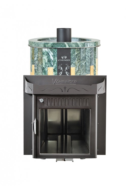 Дровяная печь Vohringer Макси До 30 м³' - Облицовка 'Змеевик + Сильвия Оро' - Обрамление 'Камень'