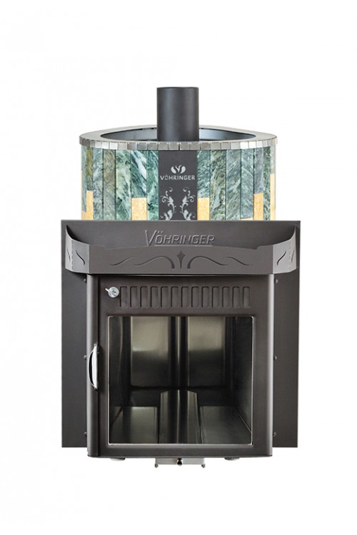 Дровяная печь Vohringer Макси До 30 м³' - Облицовка 'Змеевик + Сильвия Оро' - Обрамление 'Металл'