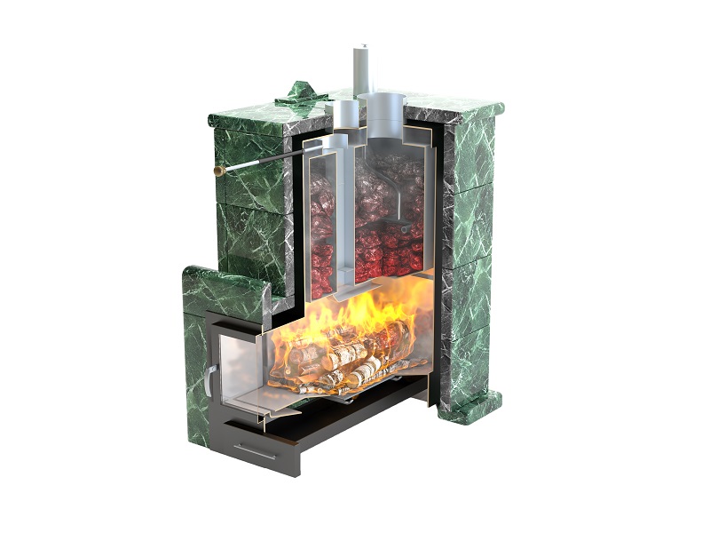 Дровяная печь Easysteam Печь «Геленджик» с боковым подключением в кожухе из талькохлорита